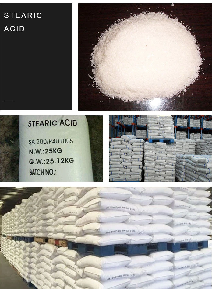 El ácido esteárico se usa ampliamente como preparación medicinal termoestable, lubricante, removedor y plastificante en la industria del plástico; el ingrediente activo de curado, el suavizante, el agente dispersante en la industria del caucho; materias primas de cera para palancas, cera para té, cera para tazas y velas artesanales; la crema suavizante, crema fría en las materias primas grasosas de los cosméticos, y también sirve como emulsionante, agente engrasante, agente suavizante, abrillantador, etc. el emulsionante, el agente dispersante, el modificador de calidad en la profesión alimentaria; AKD, el agente suavizante en la industria del papel; la materia prima del lápiz de cera en las herramientas culturales y educativas, la mina del lápiz y el espesante de agua con pegamento sólido; agente auxiliar en la medicina, agente tensioactivo y antibióticos, etc. materia prima de alcohol solidificado en la industria de combustibles y la base de jabón en la industria de lubricantes, etc.