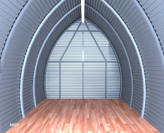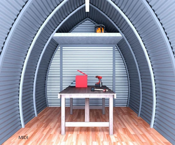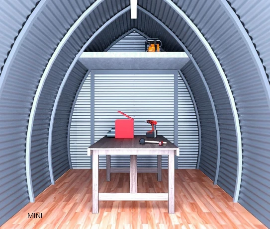 BUNGALPON es esencialmente la “cascara” de un BUNGALOFT, están fabricados con una estructura tubular de acero y revestidos con chapa galvanizada común, sin pre pintar (ya que es opcional) no posee aislamiento ni instalaciones ni divisiones interiores y puede ser armado tanto con piso de madera o como de concreto en pocas horas; o sea que se trata de un pequeño galpón, que podrá utilizarlo precariamente como vivienda, y que luego podrá continuar como tal o ser convertido muy fácilmente en una vivienda bajo el concepto de “Hágalo Usted Mismo”, con el sistema de construcción en seco.